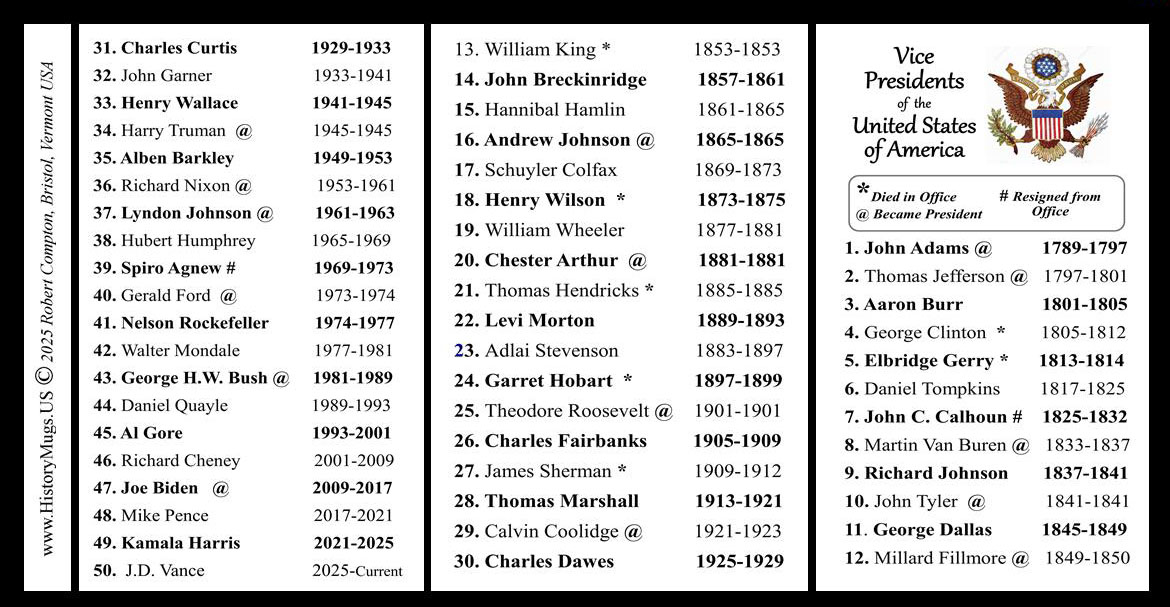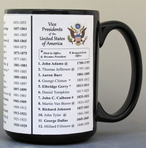 The All of the US Vice Presidents’ History Mug is one of a collection of U.S. Vice Presidential biographical mugs. A complete list of the U.S. Vice Presidents is written on the mug, and includes the years they served our country.